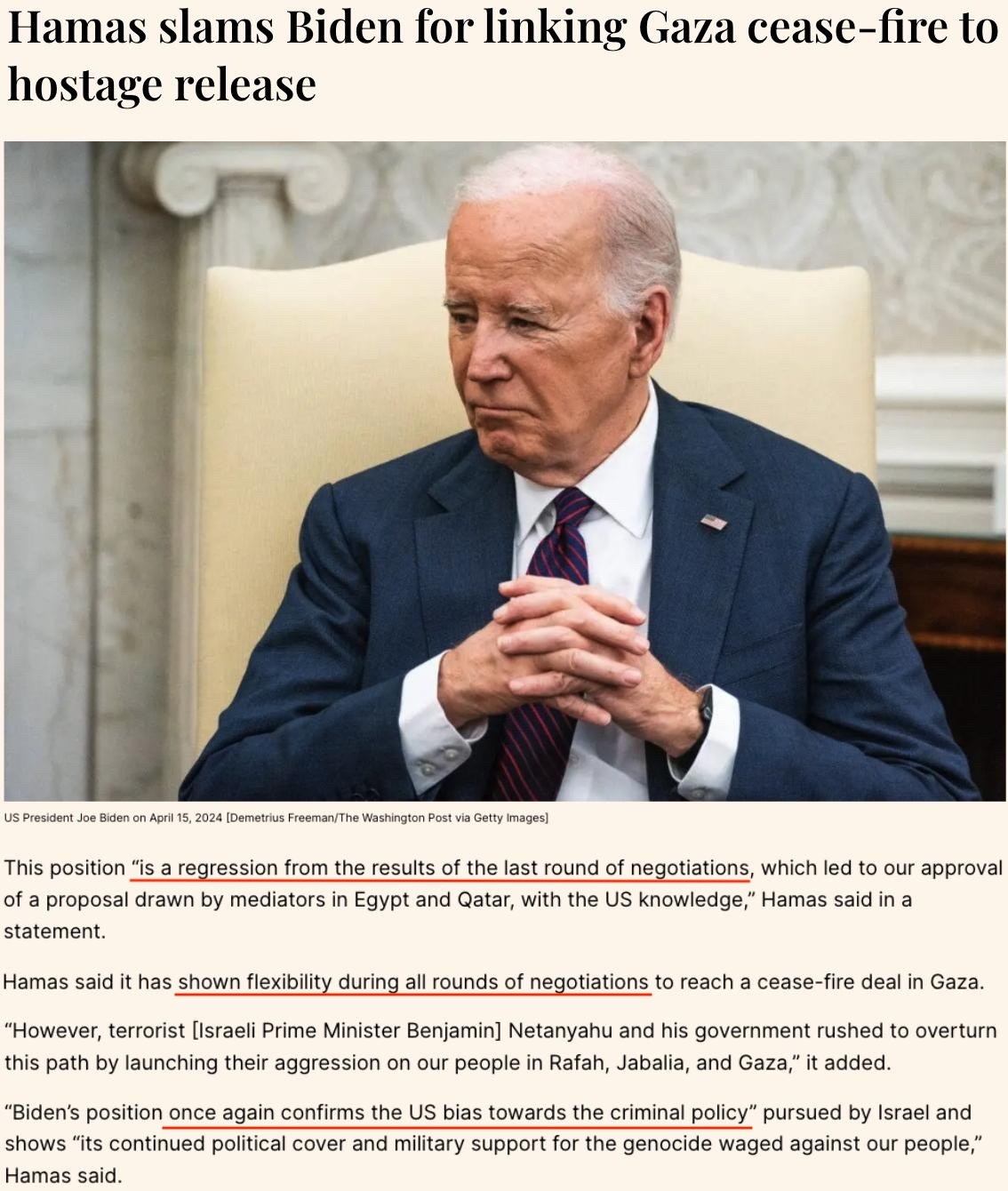 “拜登的言論令?;鹫勁羞M程倒退,也再次證明了美國對以色列的偏袒”。