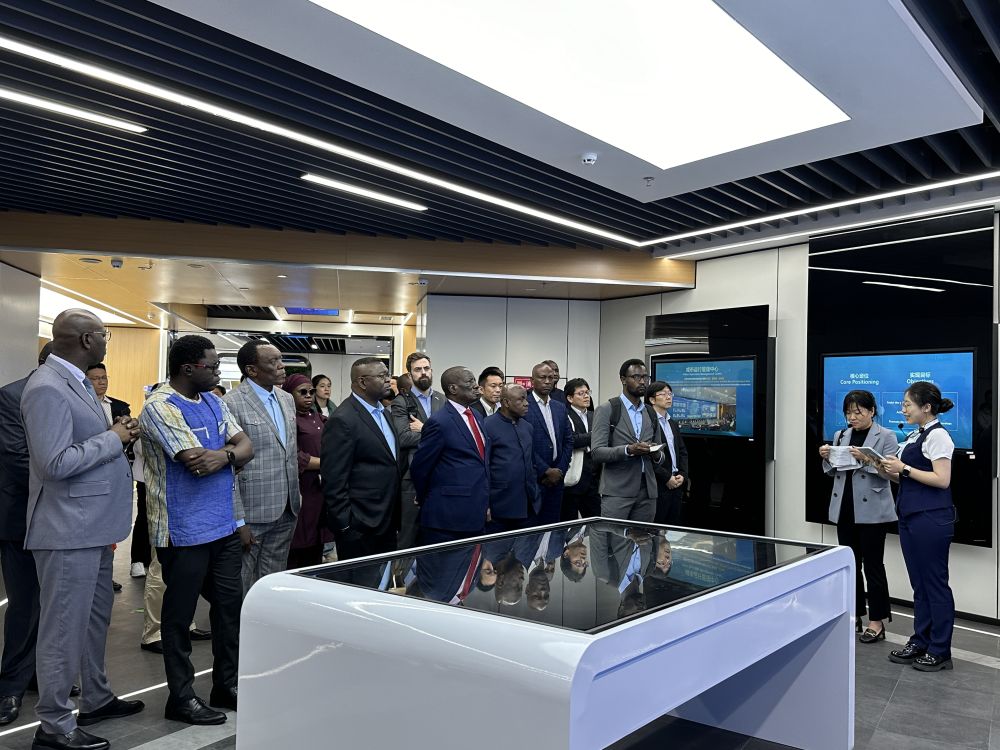 尼日利亞駐上海總領(lǐng)館商務(wù)專員穆哈穆德·哈桑一邊聽著介紹,一邊拿出手機(jī)展示尼日利亞的一處地形,詢問工程師對橋梁建設(shè)的建議以及橋梁養(yǎng)護(hù)經(jīng)驗(yàn)。