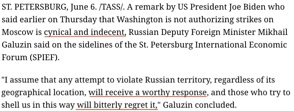 對(duì)此,俄羅斯副外長加盧津回應(yīng)稱,拜登關(guān)于可以襲擊俄邊境地區(qū)、但不能襲擊莫斯科和克里姆林宮的表態(tài)是“卑鄙且失禮”的。