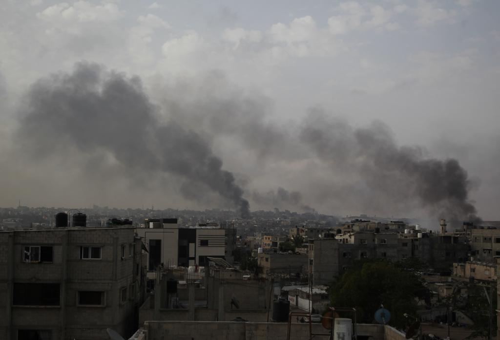以色列陸軍坦克5月28日開進加沙地帶南部城市拉法市中心。圖為拉法當(dāng)天在以軍密集轟炸期間升起濃煙。新華社發(fā)(哈立德·奧馬爾攝)