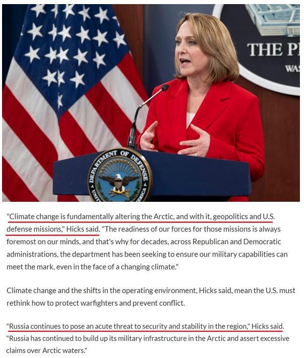 在發(fā)布這份文件時(shí),美國國防部副部長??怂乖诤唸?bào)會(huì)上公然聲稱,俄羅斯對(duì)北極地區(qū)的安全與穩(wěn)定構(gòu)成"嚴(yán)重威脅"。為此,美國必須制定戰(zhàn)略并確保美軍做好準(zhǔn)備,以減輕在北極地區(qū)發(fā)生潛在突發(fā)事件的風(fēng)險(xiǎn)。