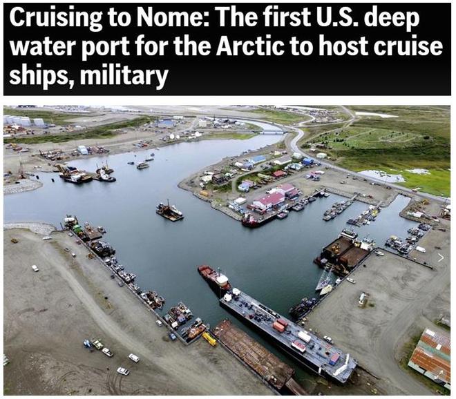 此外,美國去年提出要耗資6億多美元將阿拉斯加州諾姆港擴(kuò)建為美國首個(gè)北極深水港,而擴(kuò)建的目的之一就是方便美國軍艦???。