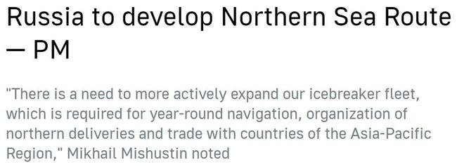 俄總理米舒斯京曾在政府會(huì)議上強(qiáng)調(diào),跨經(jīng)北極的北方海路對(duì)于向俄北部運(yùn)送物資、向世界市場(chǎng)輸送金屬和能源、進(jìn)行亞洲和歐洲之間的過境運(yùn)輸來說都非常重要,尤其是在西方制裁之下更是如此。因此,"有必要更積極地?cái)U(kuò)大俄羅斯的破冰船隊(duì)"。
