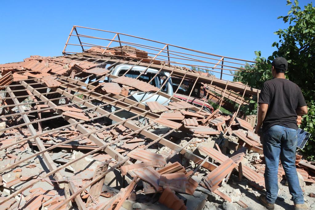 6月26日,在黎巴嫩薩巴阿,一名男子查看遭以色列空襲后的建筑廢墟。新華社發(fā)(塔希爾·阿布·哈姆丹攝)