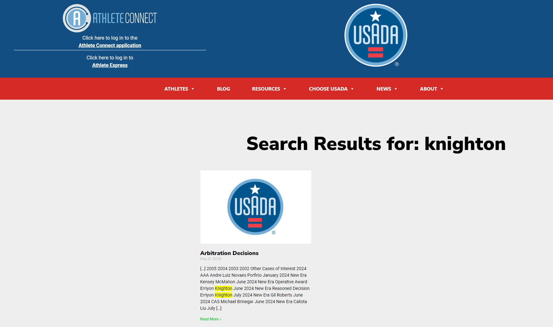 △現(xiàn)在在美國反興奮劑機構(gòu)官網(wǎng)搜索,已經(jīng)找不到聲明,只能找到必須留存的仲裁記錄