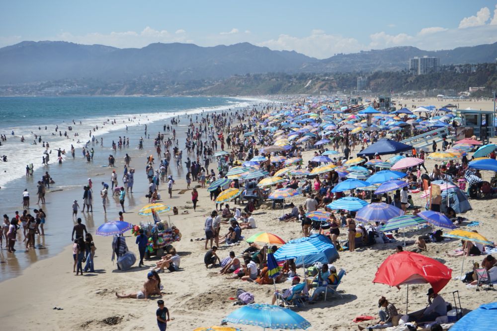 6月23日,人們在美國加利福尼亞州洛杉磯圣莫尼卡海灘休閑避暑。新華社發(fā)(曾慧攝)