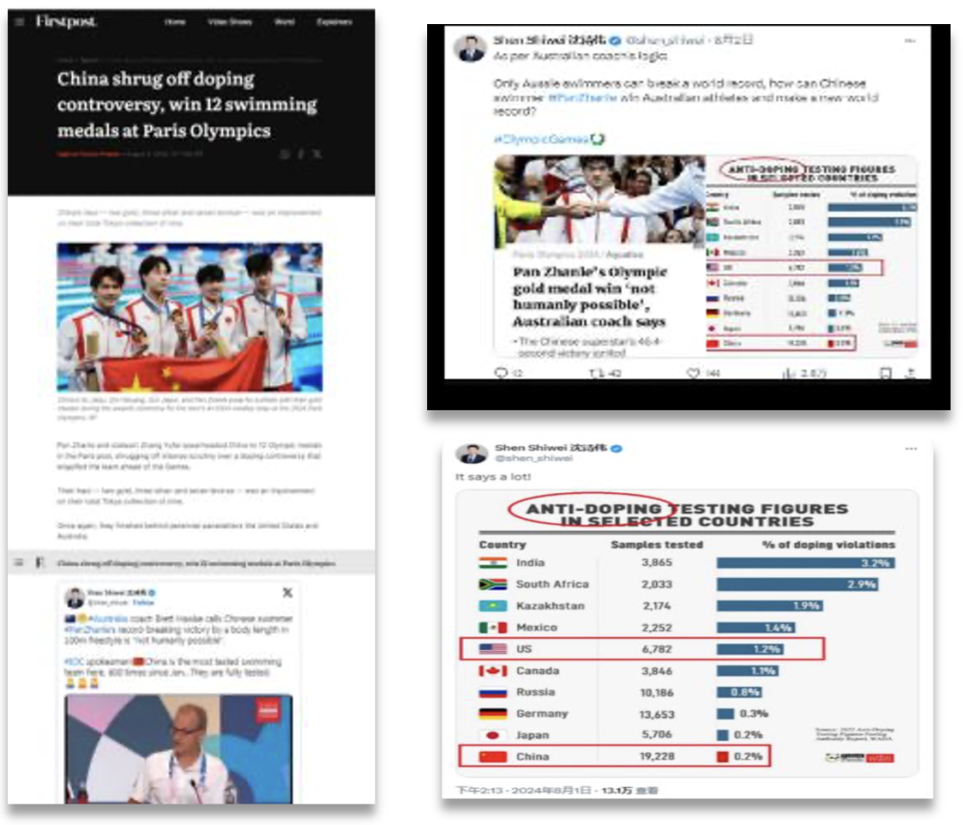 除了用及時(shí)的新聞消息擺出事實(shí),總臺(tái)各評(píng)論欄目節(jié)目鏗鏘發(fā)聲,深度起底美炒作興奮劑問題的真實(shí)動(dòng)機(jī)?!皣H銳評(píng)”發(fā)布評(píng)論文章《美方必須就大規(guī)模使用興奮劑問題給世界一個(gè)交代》,強(qiáng)調(diào)奧林匹克精神不能被“美式霸權(quán)”玷污,反興奮劑工作不應(yīng)淪為抹黑和打壓他國的工具;CGTN評(píng)論專欄《對(duì)話》《視點(diǎn)》《今日》等迅速反應(yīng),邀請(qǐng)多位中外業(yè)內(nèi)人士深度訪談,犀利剖析美國惡意污蔑中國運(yùn)動(dòng)員背后的險(xiǎn)惡用心;玉淵譚天譚主檢索分析美西方媒體今年以來的相關(guān)報(bào)道數(shù)據(jù),給國際檢測機(jī)構(gòu)(ITA)發(fā)送郵件獲取獨(dú)家回應(yīng),并且提取過去二十余年美國濫用興奮劑事件中的相關(guān)信息,還原美西方抹黑中國游泳隊(duì)的傳播鏈。