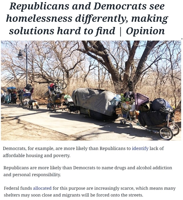 美國堪薩斯州《威奇托鷹報》評論稱,兩黨可能永遠不會就無家可歸的原因達成一致,民主黨傾向于認(rèn)為是結(jié)構(gòu)性或系統(tǒng)性因素導(dǎo)致,而共和黨則更著重宣傳是個人因素導(dǎo)致。但無論是民主黨還是共和黨都無法解決無家可歸問題,他們相左的政策意見讓解決無家可歸者的問題更加艱難,流向需要援助的民眾的資金越來越少。