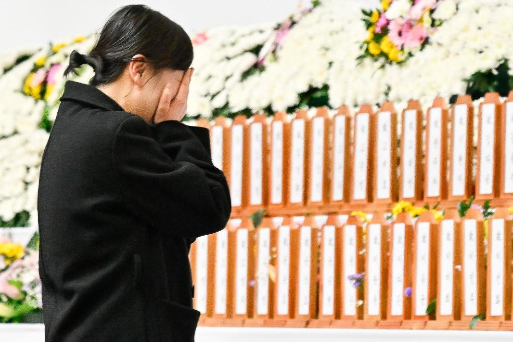 12月30日,遇難者家屬在韓國(guó)務(wù)安當(dāng)?shù)卦O(shè)置的靈堂內(nèi)哀悼親人。新華社發(fā)(全休相攝)