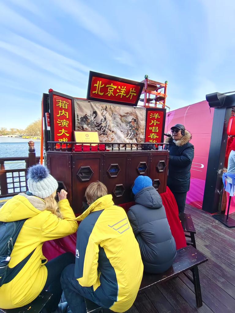 烏爾麗克與埃米爾在什剎海看北京洋片表演。新華社記者于佳欣 攝