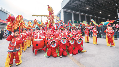 2月12日,在位于浙江杭州建德市更樓街道的建德新農(nóng)都農(nóng)產(chǎn)品批發(fā)市場(chǎng)內(nèi),一場(chǎng)特色元宵市集主題活動(dòng)助力消費(fèi)市場(chǎng)升溫。2025年1月正式投入使用的建德新農(nóng)都農(nóng)產(chǎn)品批發(fā)市場(chǎng)建筑面積8.29萬平方米,集蔬菜、水果、肉類、水產(chǎn)品等批發(fā)零售于一體,發(fā)揮保障商品供應(yīng)和穩(wěn)定區(qū)域物價(jià)作用。圖為元宵市集上,小朋友表演“萌娃舞龍”。