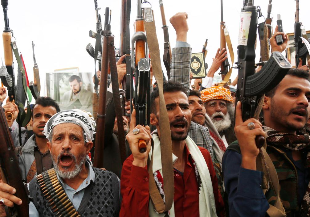 4月11日,數(shù)萬民眾在也門首都薩那參加游行集會,抗議美軍對也門的空襲。新華社發(fā)(穆罕默德·穆罕默德攝)