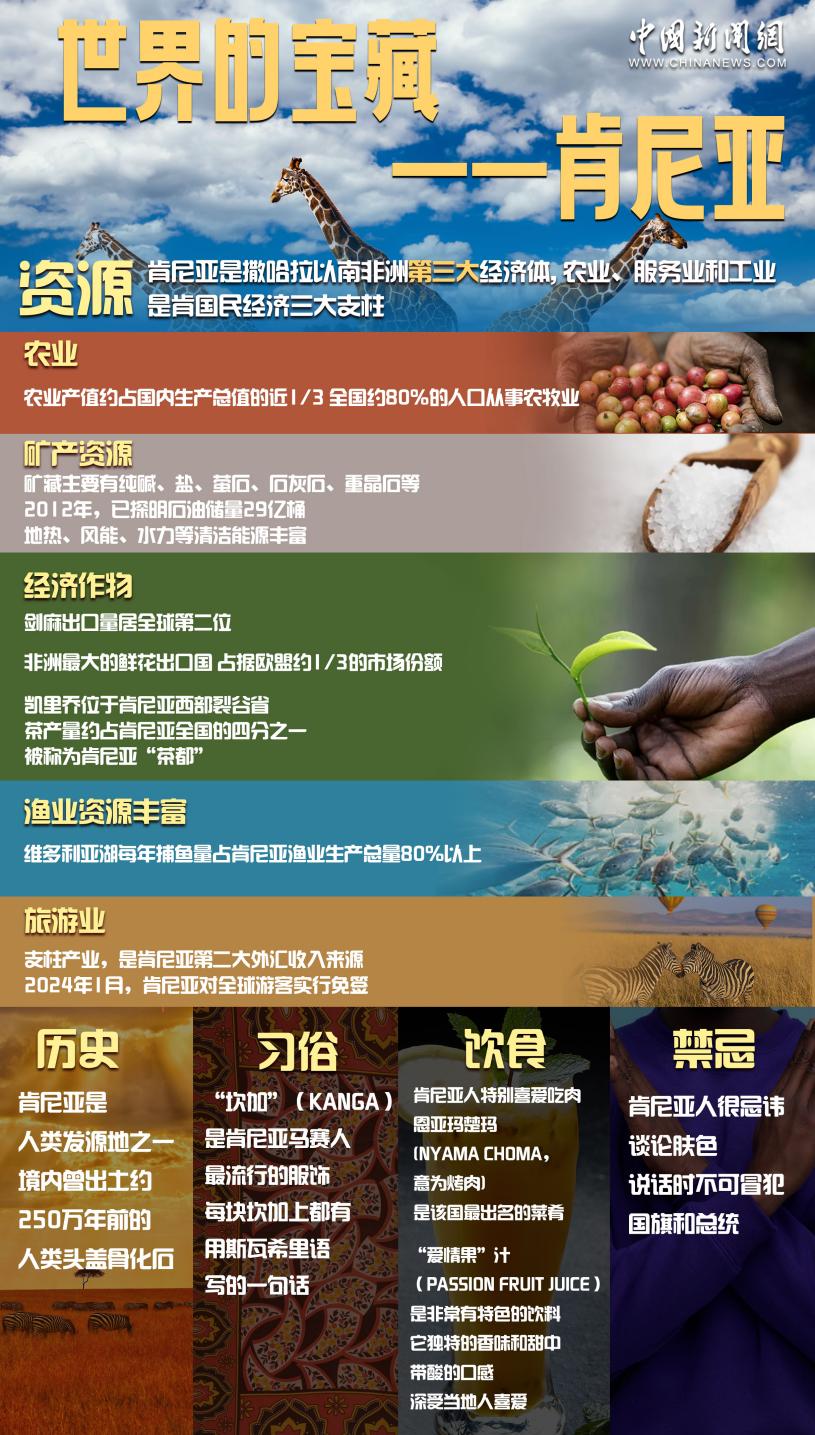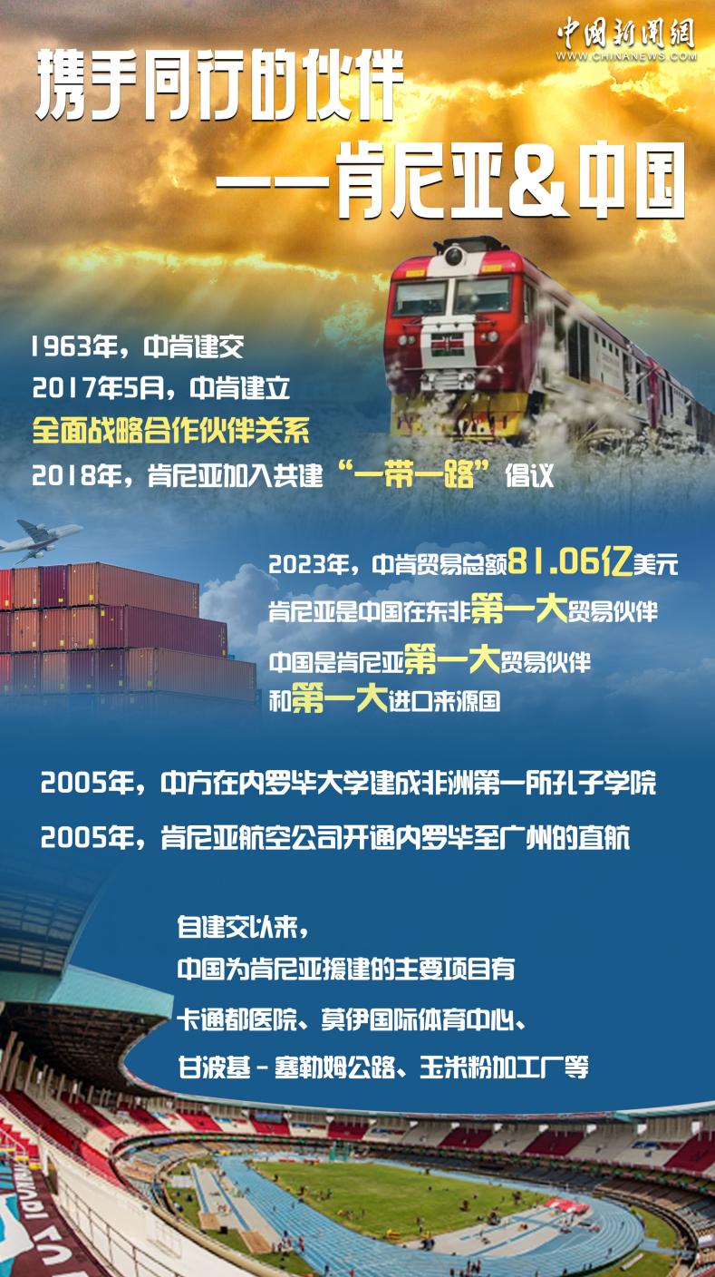 多年來,中國一直是肯最大投資來源國、貿(mào)易伙伴和工程承包方,為肯經(jīng)濟(jì)社會發(fā)展作出積極貢獻(xiàn)。2023年,中肯貿(mào)易總額達(dá)81.06億美元。目前肯尼亞約有400家中資企業(yè),中肯合作在許多領(lǐng)域都取得了豐碩的成果。