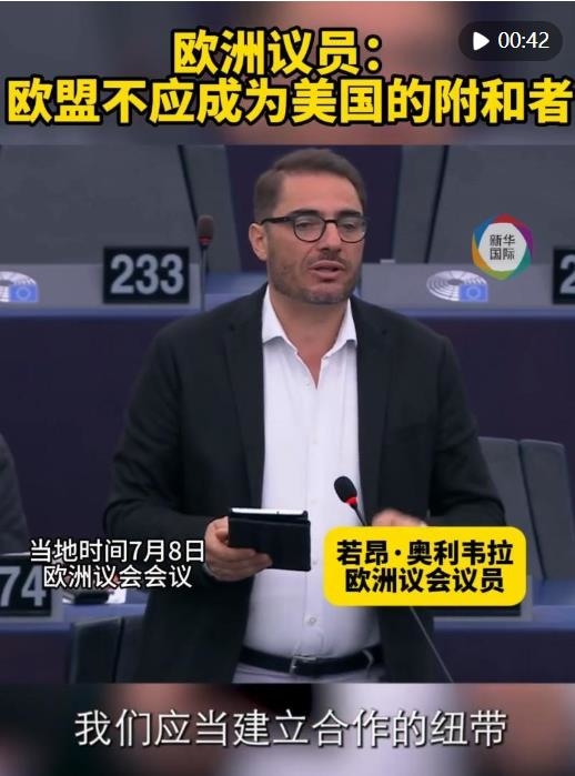 在8日的歐洲議會(huì)會(huì)議上,議員若昂·奧利韋拉在辯論中表示,歐盟不應(yīng)成為美國(guó)對(duì)華的對(duì)抗和緊張升級(jí)政策的“附和者”。他說,建立合作紐帶,實(shí)現(xiàn)互利共贏才應(yīng)是歐洲處理對(duì)華關(guān)系的基本態(tài)度。