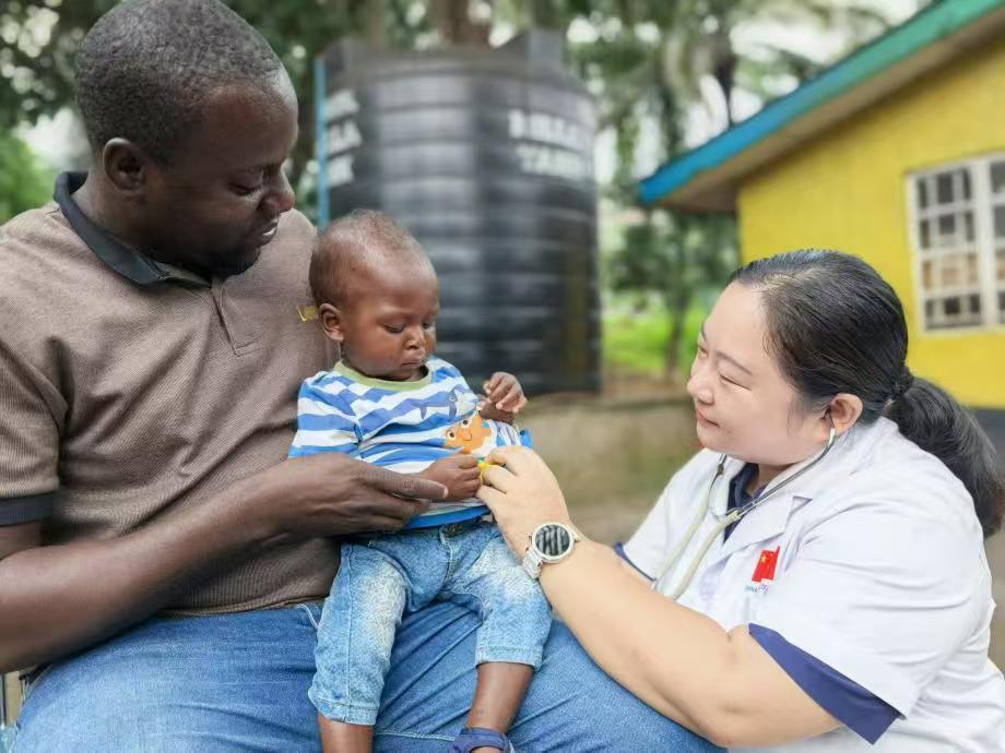 中國援助塞拉利昂醫(yī)療隊專家為當(dāng)?shù)貎和丛\