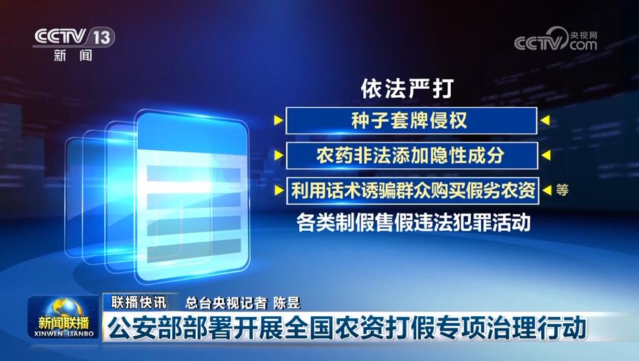 近日,公安部會同有關部門部署開展全國農資打假專項治理行動,依法嚴打種子套牌侵權、農藥非法添加隱性成分、利用話術誘騙群眾購買假劣農資等各類制假售假違法犯罪活動,切實維護農民群眾合法權益。