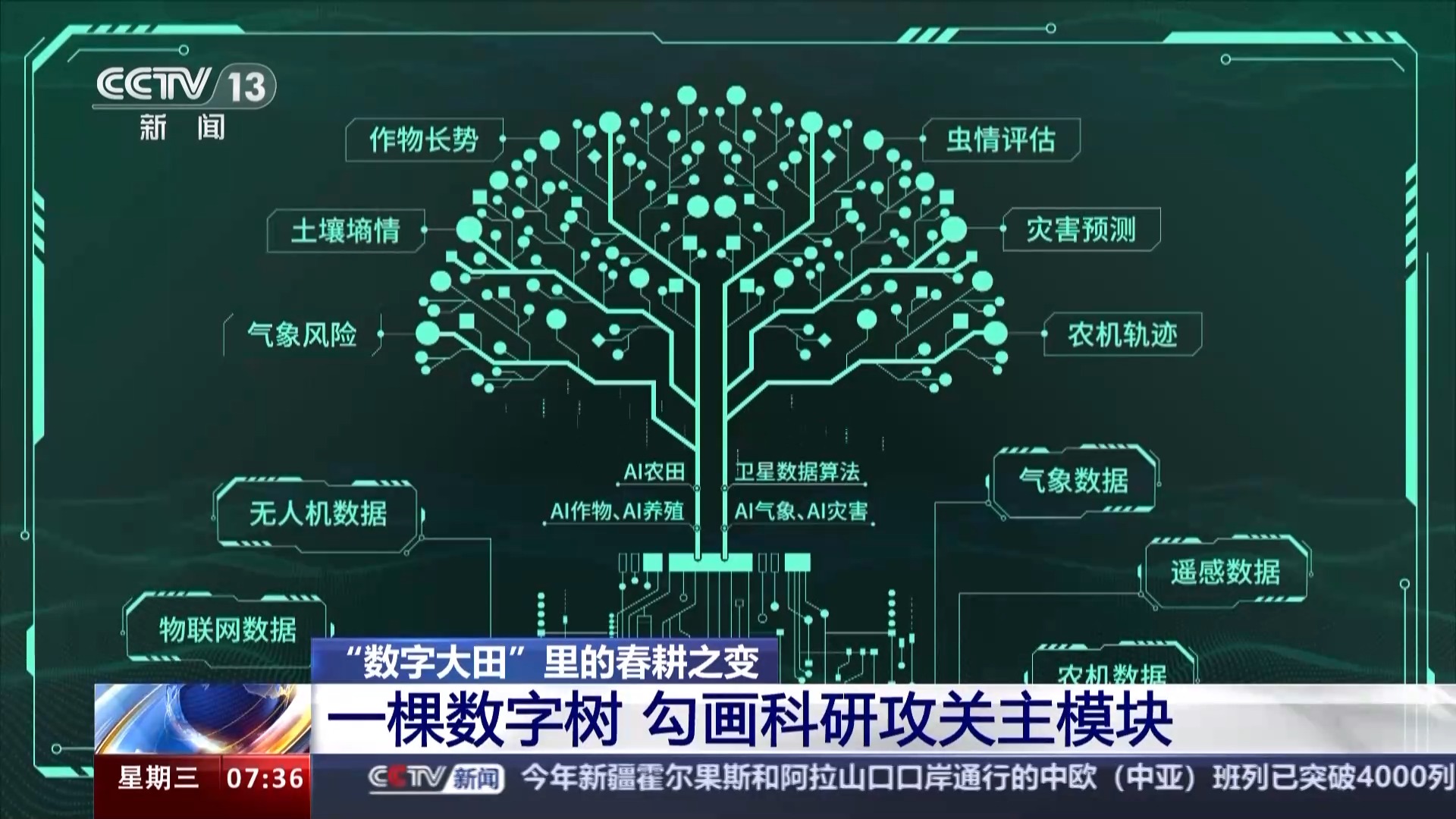 從眼前這個(gè)樹(shù)狀協(xié)作圖基本可以看出團(tuán)隊(duì)的架構(gòu):樹(shù)根是多維大數(shù)據(jù),由遙感衛(wèi)星、氣象、物聯(lián)網(wǎng)等收集從天到地的農(nóng)業(yè)數(shù)據(jù),遙感團(tuán)隊(duì)、氣象團(tuán)隊(duì)負(fù)責(zé)數(shù)據(jù)收集、預(yù)處理;樹(shù)干是骨架,由遙感、氣象以及人工智能人員組成團(tuán)隊(duì)建模,對(duì)基座數(shù)據(jù)進(jìn)行分析;樹(shù)冠是數(shù)據(jù)成果,長(zhǎng)出田塊位置、作物長(zhǎng)勢(shì)、災(zāi)害預(yù)警等信息。最后通過(guò)計(jì)算機(jī)工程師的搭建,一塊塊數(shù)字農(nóng)田就出現(xiàn)在屏幕里。