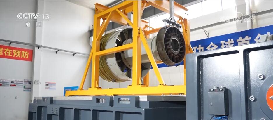 眼前這臺(tái)正在保持高頻振動(dòng)的設(shè)備在對(duì)一臺(tái)近3噸重的飛機(jī)發(fā)動(dòng)機(jī)進(jìn)行振動(dòng)試驗(yàn)。在此之前,沒有設(shè)備可以完成這個(gè)重量等級(jí)的整機(jī)振動(dòng)試驗(yàn)。