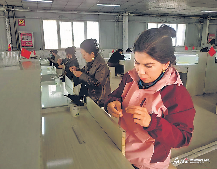該公司負(fù)責(zé)人迪麗達(dá)爾·克依木說:“這個月我們有個100萬元的訂單,工人正加班加點生產(chǎn)?!?/p>