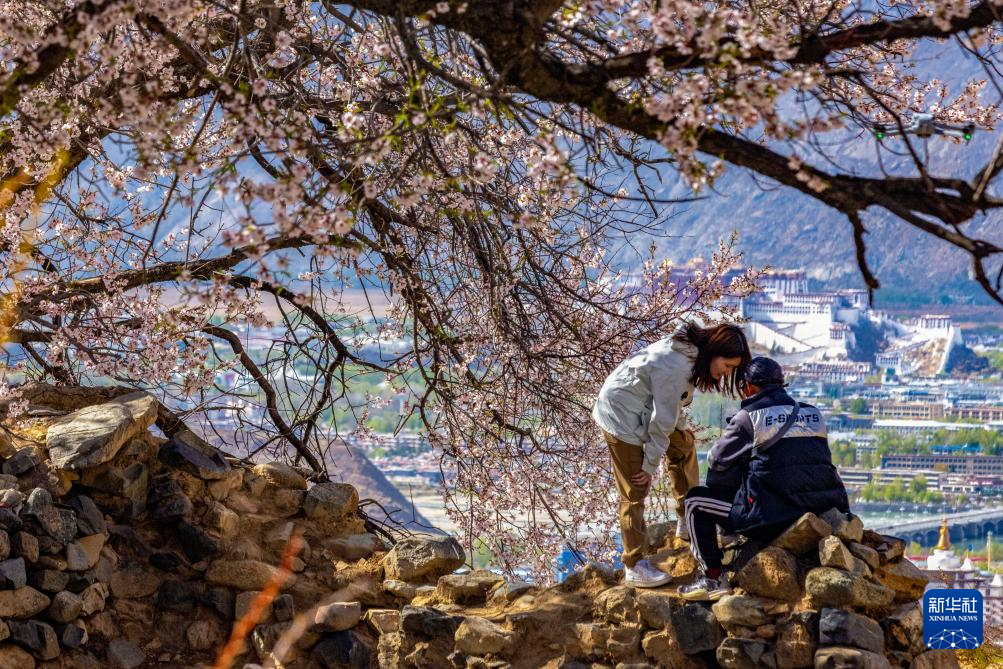 ??桃花映襯著布達(dá)拉宮(4月17日攝)。新華社記者 姜帆 攝