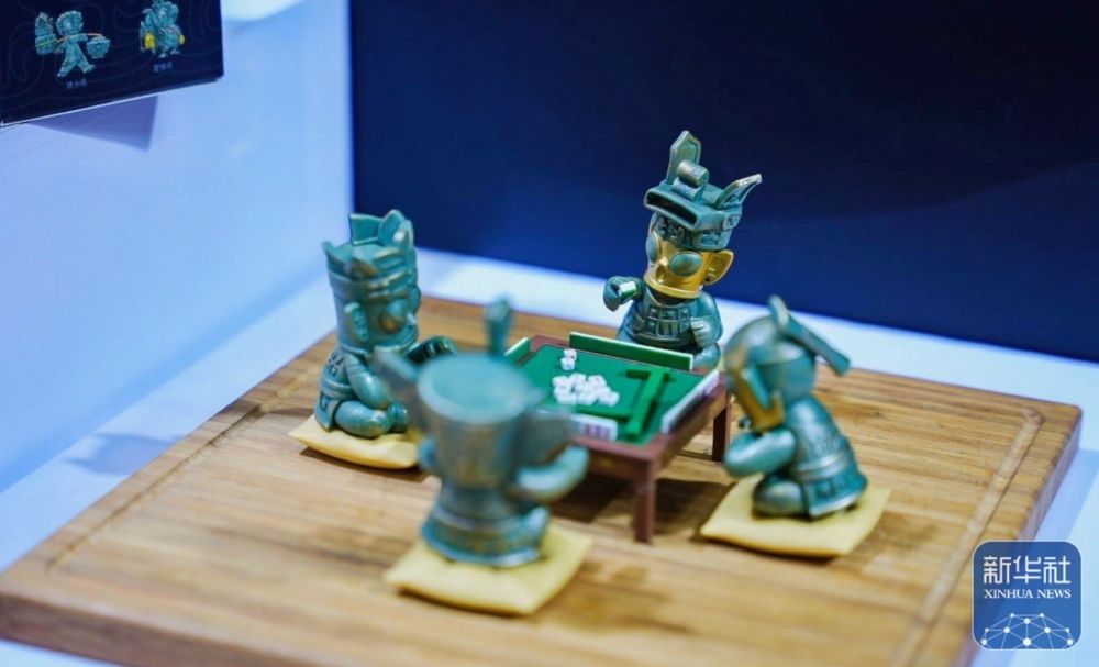 四川館展示了三星堆博物館文創(chuàng)產(chǎn)品。新華社記者王楚天 攝