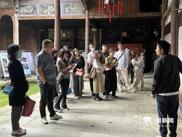 依山而建、傍水而居,位于磐安的櫸溪村又帶給臺(tái)青們另一幅鄉(xiāng)村畫卷,古樸宏偉的孔氏家廟,村落沿著溪流和山坡緩緩延伸,這里是江南地區(qū)一支孔子后裔聚集地。“這里每一條巷子里都能感覺到悠久的歷史氣息。”一路上臺(tái)青們不停地拿起手機(jī)打卡留念。