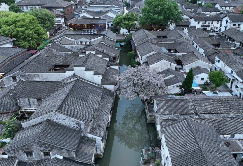 鳥(niǎo)瞰紹興倉(cāng)橋直街(4月24日攝,無(wú)人機(jī)照片)。新華社記者翁忻旸 攝