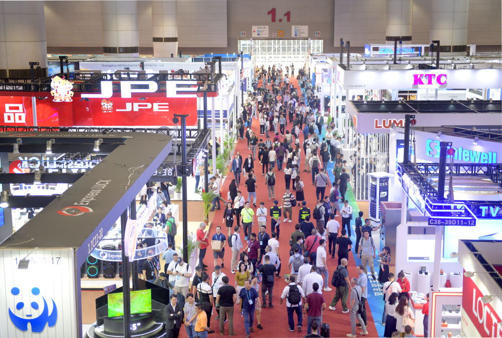 4月15日,客商在廣交會(huì)展館內(nèi)選購音箱。(盧漢欣 攝)