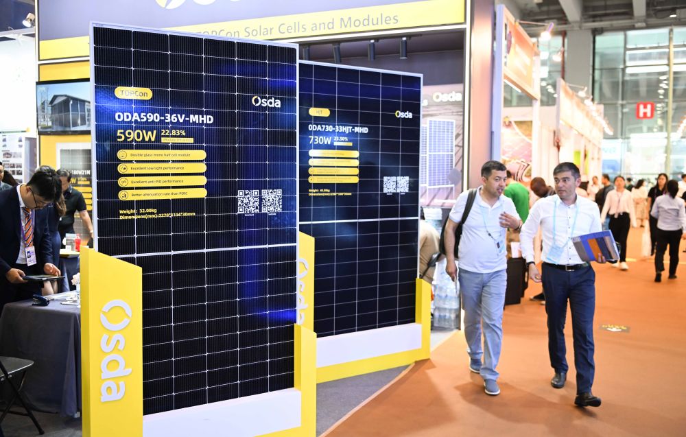在創(chuàng)維公司的展廳,眾多客商圍觀一款可以由直面屏變?yōu)榍嫫恋淖冃坞娨暋3译娡?,公司還專設(shè)新能源光伏的展區(qū)。創(chuàng)維公關(guān)負(fù)責(zé)人孫妮介紹說:“四年內(nèi),創(chuàng)維新能源業(yè)務(wù)從無到有,目前達(dá)到約234億元的規(guī)模。”面對全球光伏及儲(chǔ)能領(lǐng)域的巨大市場機(jī)遇,創(chuàng)維集團(tuán)積極推進(jìn)新能源業(yè)務(wù)出海,現(xiàn)已布局到澳大利亞、墨西哥、南非等27個(gè)國家和地區(qū)。