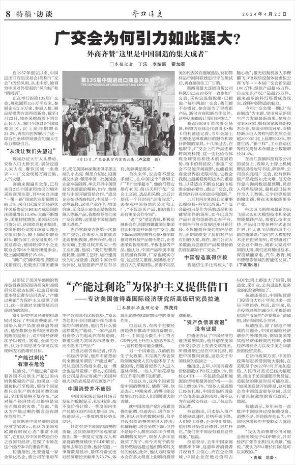 多次參加廣交會(huì)的韓國FORMULER公司銷售經(jīng)理金明圭說:“通過這個(gè)平臺(tái),我們可以接觸到來自不同國家的供應(yīng)商和采購商,為公司發(fā)展開拓新客源。這次開展不到三天,我們已經(jīng)簽下四五單合同?!彼浅?春弥袊袌?,中國市場已經(jīng)非常成熟,不僅體量巨大,還能引領(lǐng)許多產(chǎn)業(yè)在國際舞臺(tái)的創(chuàng)新發(fā)展。