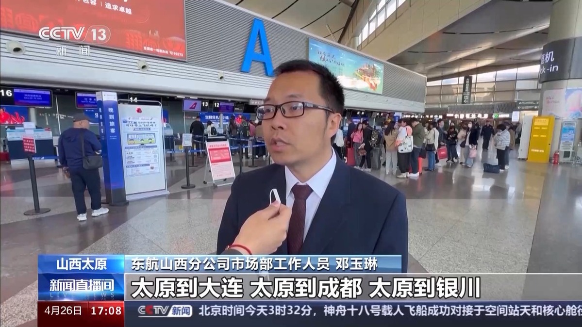 東航山西分公司市場部工作人員鄧玉琳 :從目前航班的運力情況來看,太原到大連,太原到成都,太原到銀川,太原到重慶、寧波這些城市,整個五一期間的預訂情況是比較好的。主要的到達目的地涉及國內30余個大中小城市,還有兩個國際和地區(qū)航點。目前整體的運力投入,能夠極大地滿足和方便廣大旅客的“五一”出行需求。