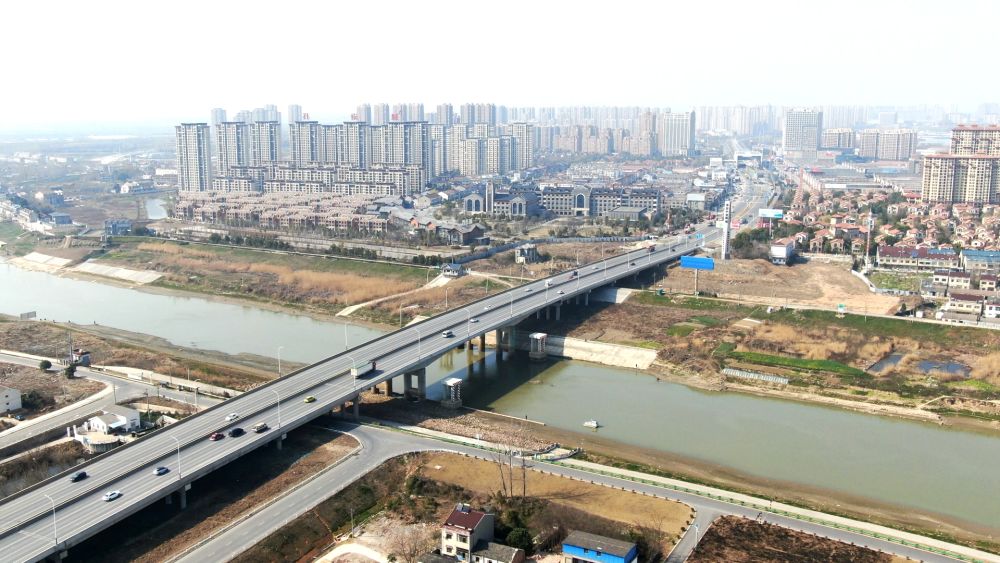 這是連接來安縣汊河鎮(zhèn)和南京市江北新區(qū)的汊河大橋(2023年3月2日攝,無(wú)人機(jī)照片)。新華社發(fā)(孫駿 攝)