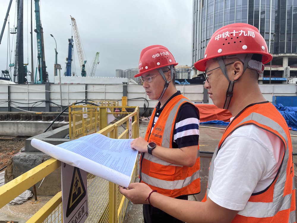“皇崗口岸站主體結(jié)構(gòu)基坑深約42米,花崗巖強(qiáng)度差異性大,施工難度大風(fēng)險(xiǎn)高,守在現(xiàn)場(chǎng)心里才踏實(shí)?!毕睦笳f(shuō)。他帶領(lǐng)團(tuán)隊(duì)經(jīng)過(guò)多次試驗(yàn),分析巖土體的變形特征,最終總結(jié)出基巖淺埋區(qū)超深基坑上墻下樁支護(hù)結(jié)構(gòu)施工技術(shù),確?;邮┕じ影踩煽?。