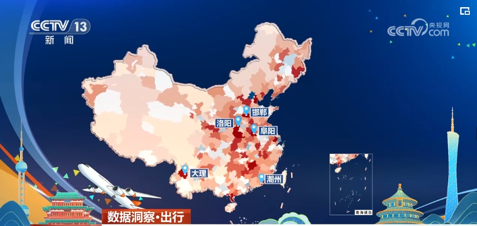 代表旅客凈流入的紅色占據(jù)了絕大多數(shù),達到城市總數(shù)的八成,甚至比4月30日還高了一成。在這些城市當(dāng)中,洛陽、潮州、大理、阜陽、邯鄲等城市成為旅客凈流入量較大的目的地,這意味著在假期第一天,有更多人從中心城市前往了中小城市。