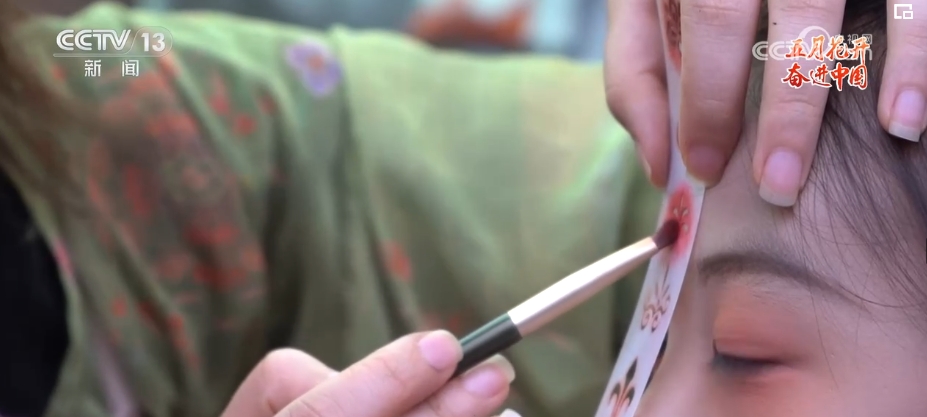 花鈿是古代女性在額頭部位點綴的一種花飾。現(xiàn)在的胡芯銀,不僅會根據(jù)顧客的年齡、臉型和服裝的樣式來搭配不同風格的花鈿,還會給小姐姐們做一些傳統(tǒng)文化的講解。胡芯銀說,要想做得更好,就要多看多學。