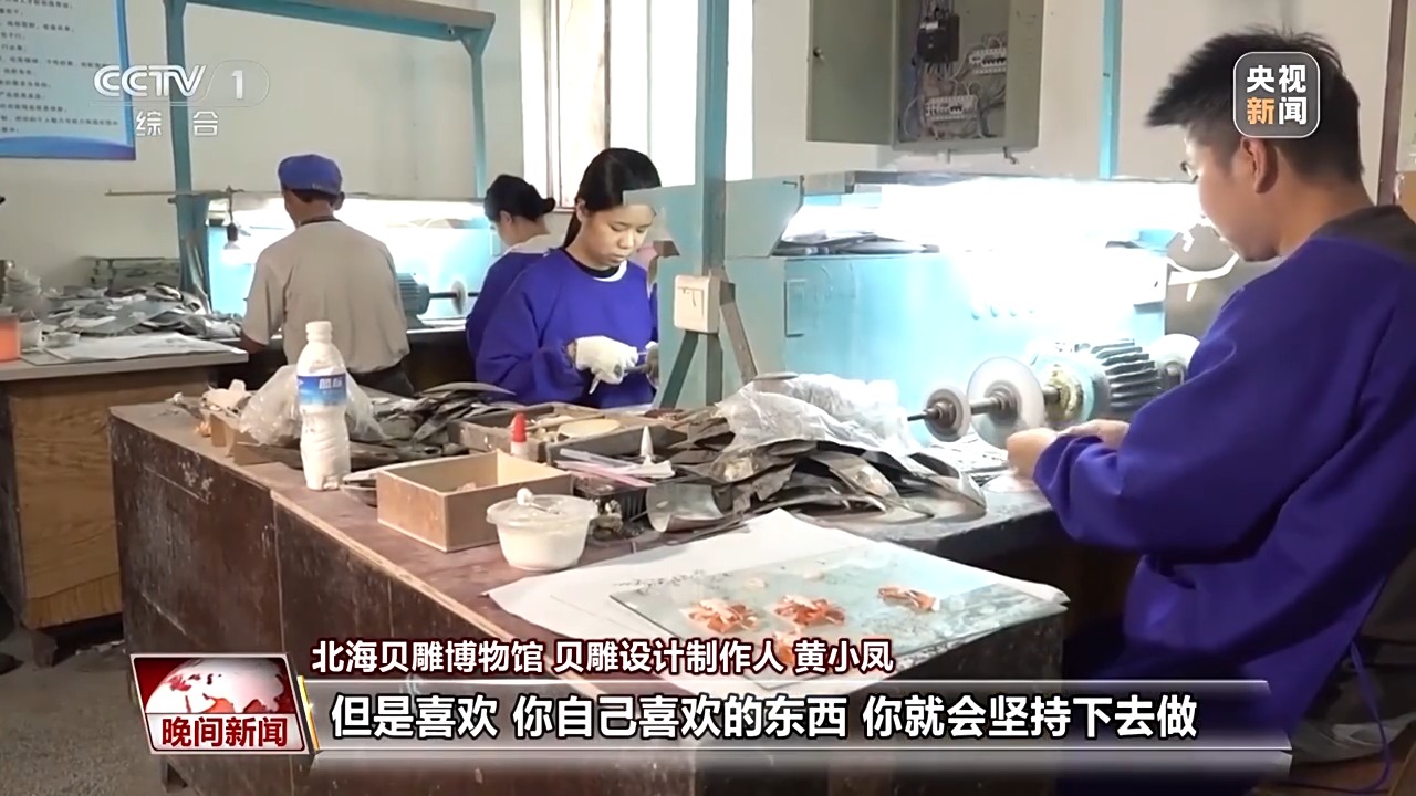 北海貝雕博物館貝雕設(shè)計(jì)制作人 黃小鳳:剛開始的時候?qū)W的話也比較容易受傷,但是喜歡,你自己喜歡的東西,你就會堅(jiān)持下去做。