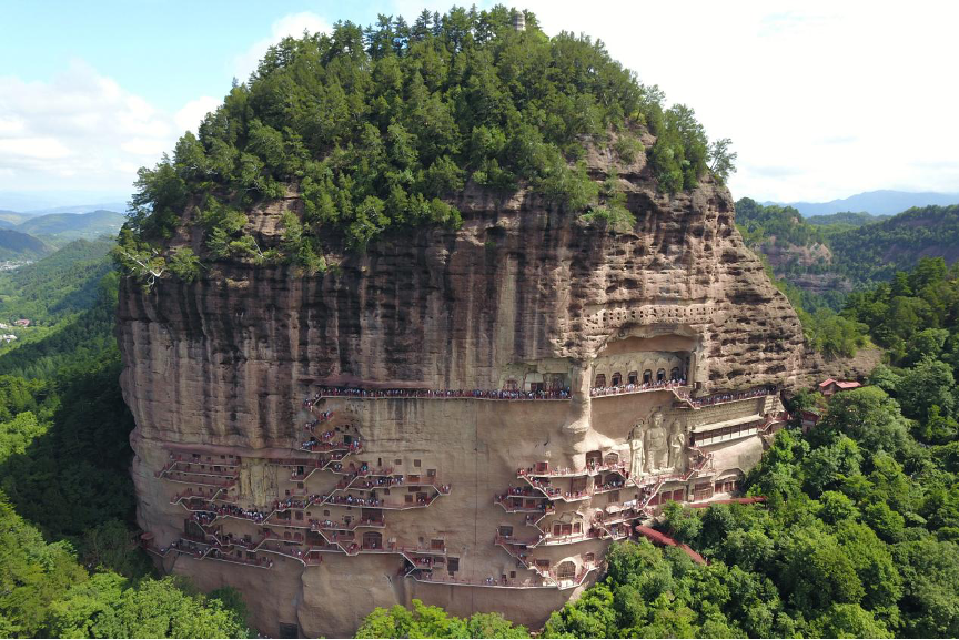 麥積山石窟(無人機照片)。新華社記者 范培珅 攝