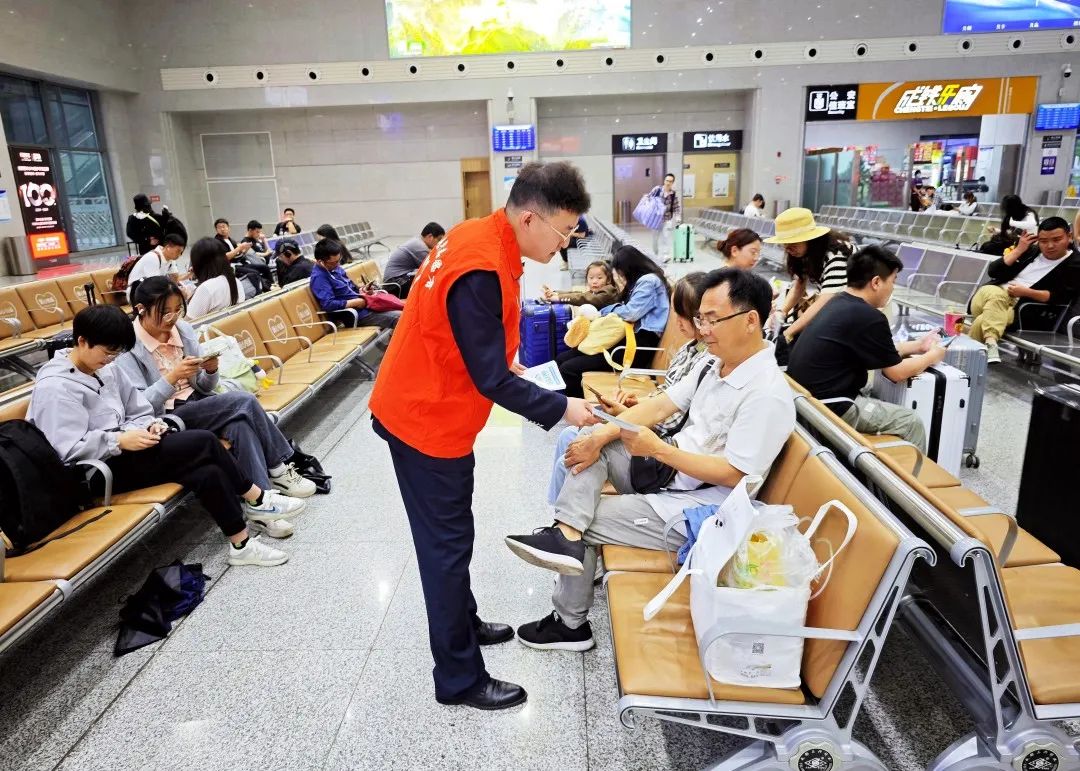 上海局集團(tuán)公司杭州東、杭州、杭州南、杭州西站每日安排120名志愿者提供引導(dǎo)和問詢解答服務(wù),針對(duì)客流集中的重點(diǎn)車次和時(shí)段,采取適當(dāng)提前檢票、動(dòng)態(tài)優(yōu)化候車區(qū)域旅客分布、增加安檢口雙人手檢力量等措施,服務(wù)旅客順暢出行。