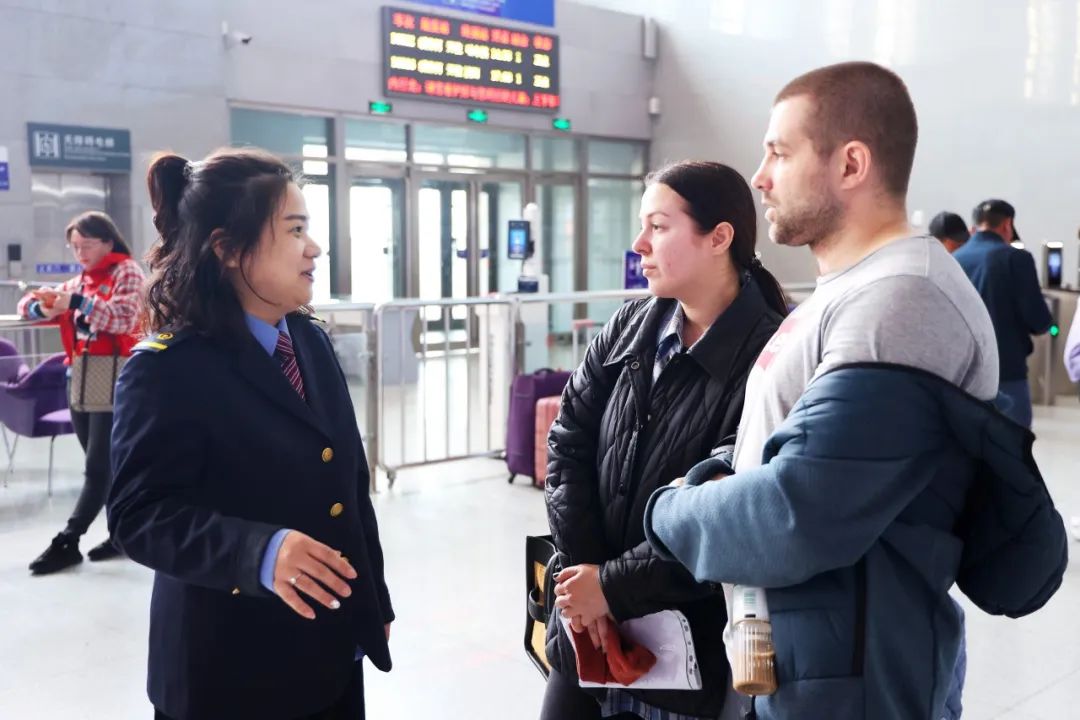 綏芬河站更是在國(guó)際聯(lián)運(yùn)的一線發(fā)揮著不可或缺的作用。哈爾濱局集團(tuán)公司針對(duì)假期綏芬河口岸外籍跨境游旅客增多的實(shí)際,組織翻譯員工成立志愿服務(wù)小隊(duì),為外國(guó)旅客提供雙語服務(wù)。