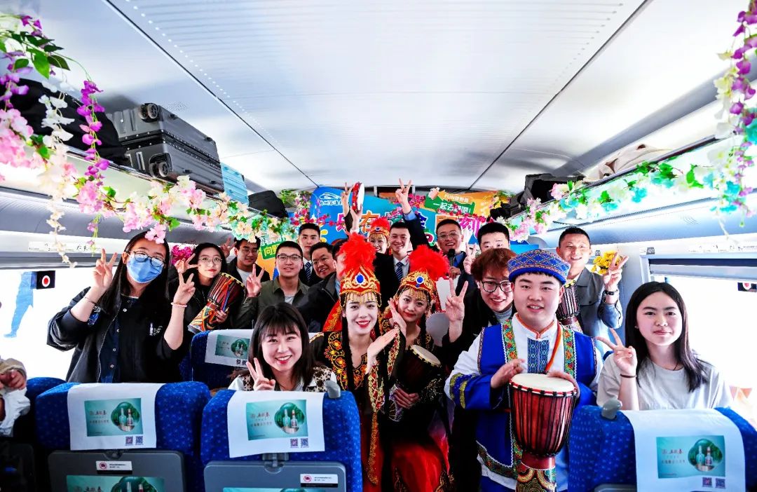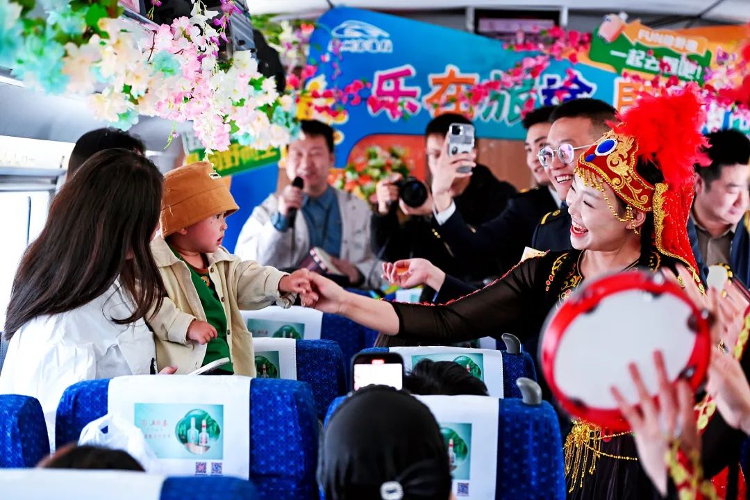 蘭州局集團(tuán)公司在G1876次列車上舉辦“樂在旅途 即刻出發(fā)”主題秀,用錦簇花團(tuán)裝飾列車,乘務(wù)員載歌載舞與旅客熱情互動(dòng),豐富旅客假期出行體驗(yàn)。