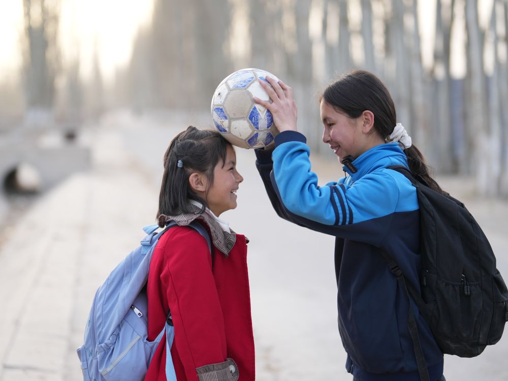 賽麗瑪很穩(wěn)重,賽比熱則是姐姐快樂的“小尾巴”,因?yàn)榻憬闾咔?,她也耳濡目染地開始練習(xí)?!拔疫M(jìn)足球隊(duì)的時(shí)候很弱,然后練了很多次帶球、鏟球之類的,我就更加堅(jiān)強(qiáng)了?!彼男A臉上帶著幾分驕傲,“在班里搬桌子的時(shí)候,我一搬桌子,桌子就會走。”