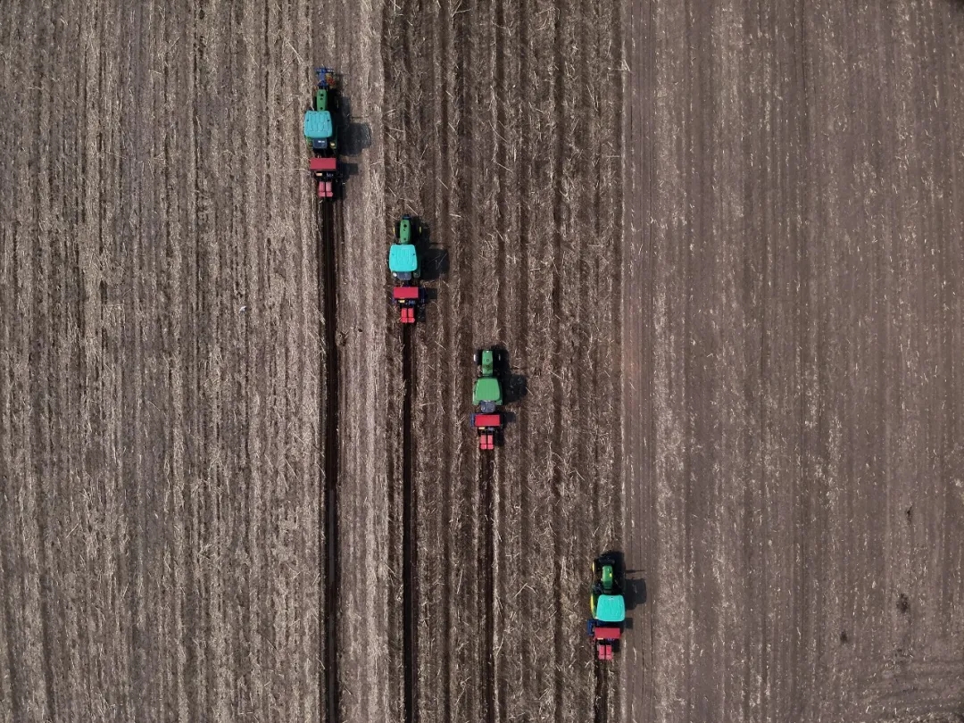 梨樹縣蔡家鎮(zhèn)敬友村誠(chéng)農(nóng)農(nóng)機(jī)農(nóng)民專業(yè)合作社的社員們駕駛大型智慧化播種機(jī)播種玉米。隨著天氣逐漸轉(zhuǎn)暖,梨樹縣大田播種逐漸拉開帷幕。據(jù)了解,2024年梨樹縣春播農(nóng)作物種植計(jì)劃393.9萬畝,其中,玉米339萬畝、大豆17萬畝、水稻10.04萬畝、薯類2.8萬畝、其他農(nóng)作物播種25.06萬畝。郭敢峰 本報(bào)記者錢文波 攝
