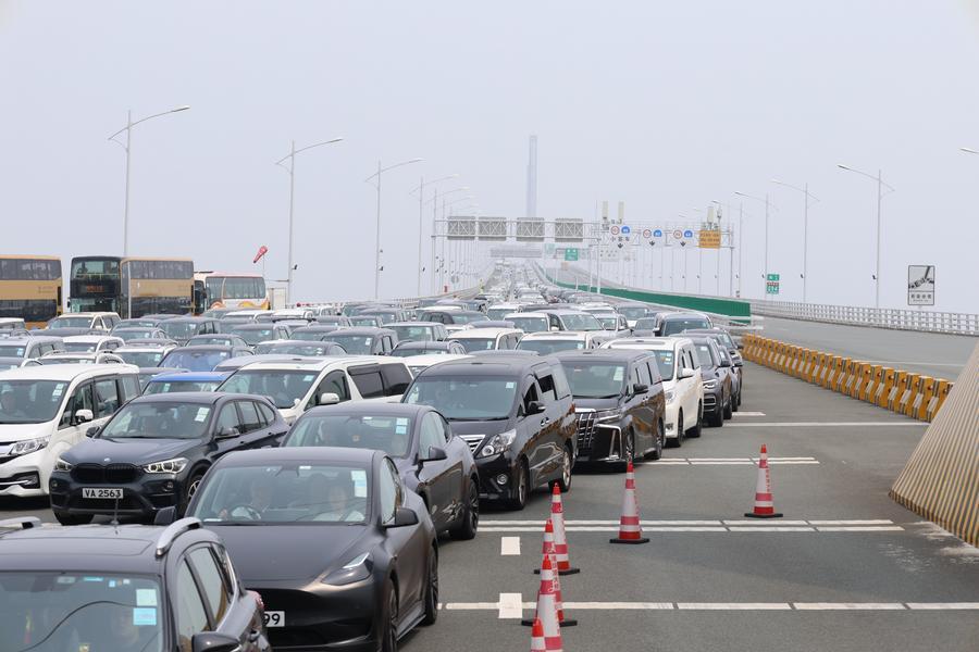 2024年3月9日拍攝的港珠澳大橋橋頭等待北上的車輛。港珠澳大橋邊檢站的數(shù)據(jù)顯示,截至3月9日21時(shí),經(jīng)該站查驗(yàn)的出入境“港車北上”車輛已突破50萬(wàn)輛次。邊檢部門介紹,自2023年7月1日“港車北上”政策正式實(shí)施以來,駕駛單牌私家車“北上”的香港居民數(shù)量持續(xù)上升。 新華社發(fā)(王相國(guó)攝)