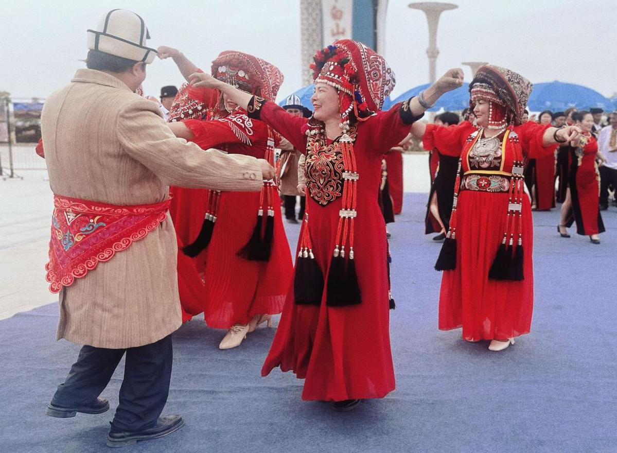 (圖為柯爾克孜族歌舞互動 馬倩妮攝)