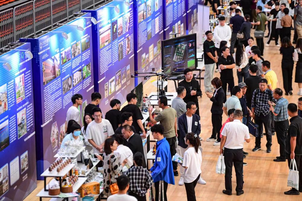 在沈陽市沈陽農(nóng)業(yè)大學(xué)禾豐體育館舉辦的遼寧省高校科技成果轉(zhuǎn)化對接大會現(xiàn)場(2023年9月攝)。新華社發(fā)