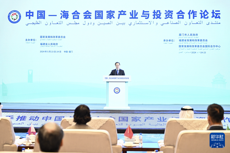 5月23日,中共中央政治局常委、國(guó)務(wù)院副總理丁薛祥在廈門出席中國(guó)-海合會(huì)國(guó)家產(chǎn)業(yè)與投資合作論壇,宣讀習(xí)近平主席賀信并致辭。新華社記者 燕雁 攝