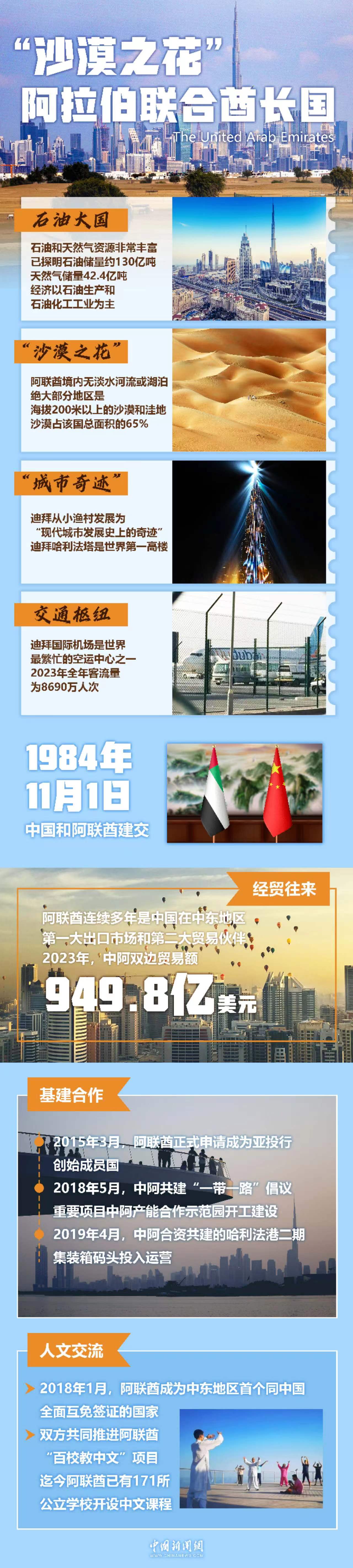 穆罕默德表示,阿聯(lián)酋同中國關(guān)系建立在相互信任、相互尊重和共同利益的基礎(chǔ)之上,各領(lǐng)域合作達(dá)到非凡水平。