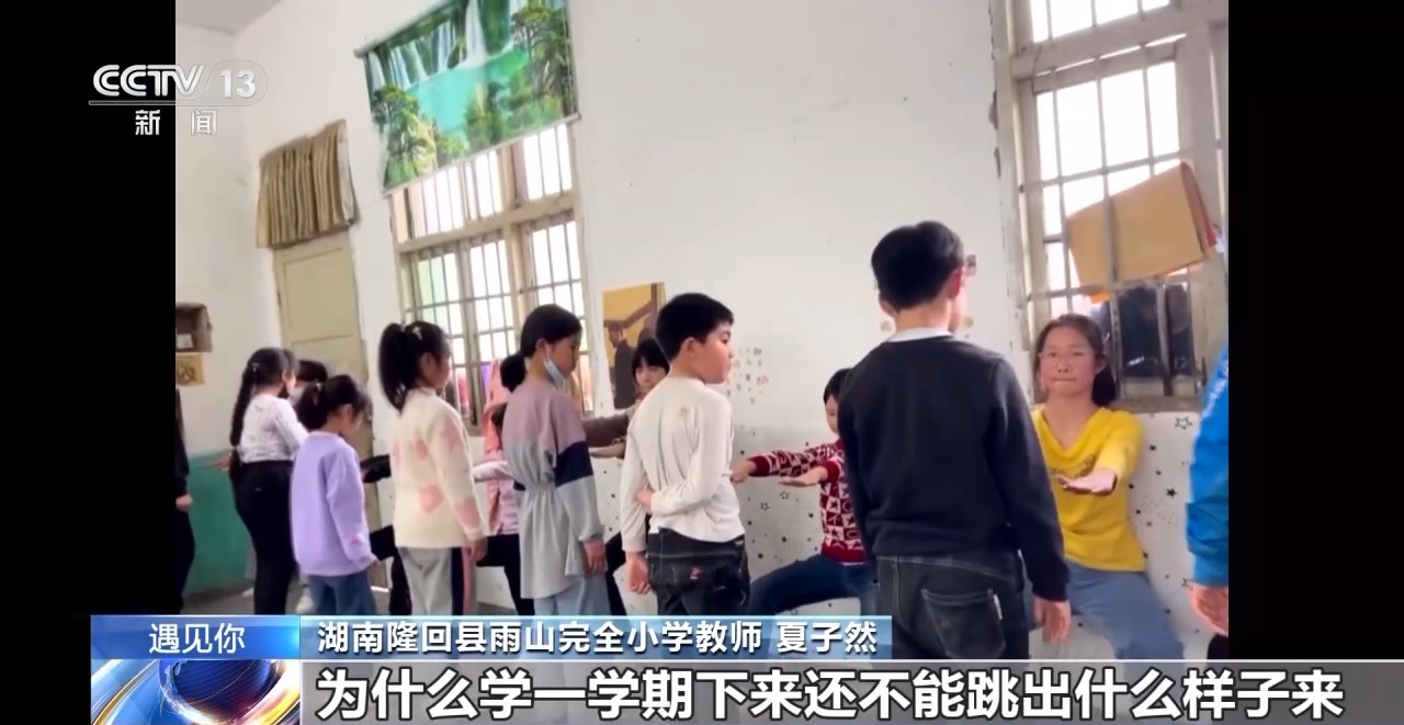 湖南隆回縣雨山完全小學(xué)老師 夏子然:跟他們跳舞,任何時候都是很難忘的回憶,每天都是限定版,我會用拍視頻的方式給記錄下來,在課后一個一個放大,去觀察他們的狀態(tài)和跳舞的動作,在第二節(jié)課,再做出相對應(yīng)的調(diào)整。跳舞能夠讓他們放松,跳舞能夠讓他們變得開心,我最初的目的就達(dá)到了。