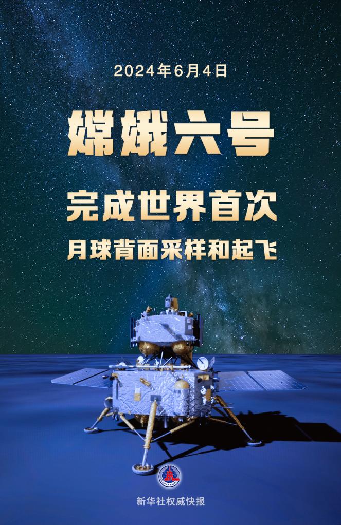 6月4日7時(shí)38分,嫦娥六號(hào)上升器攜帶月球樣品自月球背面起飛,隨后成功進(jìn)入預(yù)定環(huán)月軌道。嫦娥六號(hào)完成世界首次月球背面采樣和起飛。