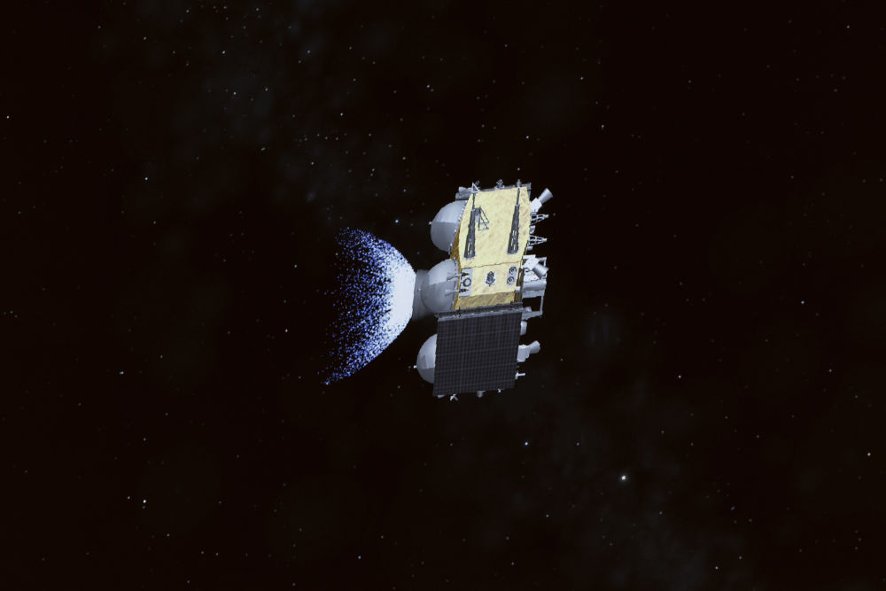 6月4日在北京航天飛行控制中心屏幕上拍攝的嫦娥六號取樣回放畫面。